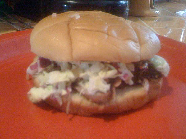 i really enjoy a pulled pork sandwich, and would probably list it at #6, but my friend john’s version is especially exceptional. his pork shoulder is dry rubbed with special spices overnight, slow cooked in butter and apple juice, and then finished off by smoking it on the grill. the juicy, tender and full of flavor meat is put in a steamed white bun and topped off with dreamland bbq sauce and slaw…com’ on!