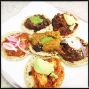 my friend raf decided on the sampler of six mini tacos, and went with the first six on the chalkboard, which we were told are the most popular.