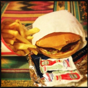 dinner from sonic, tuba city, az: cheeseburger, fries. (eaten in our motel room)