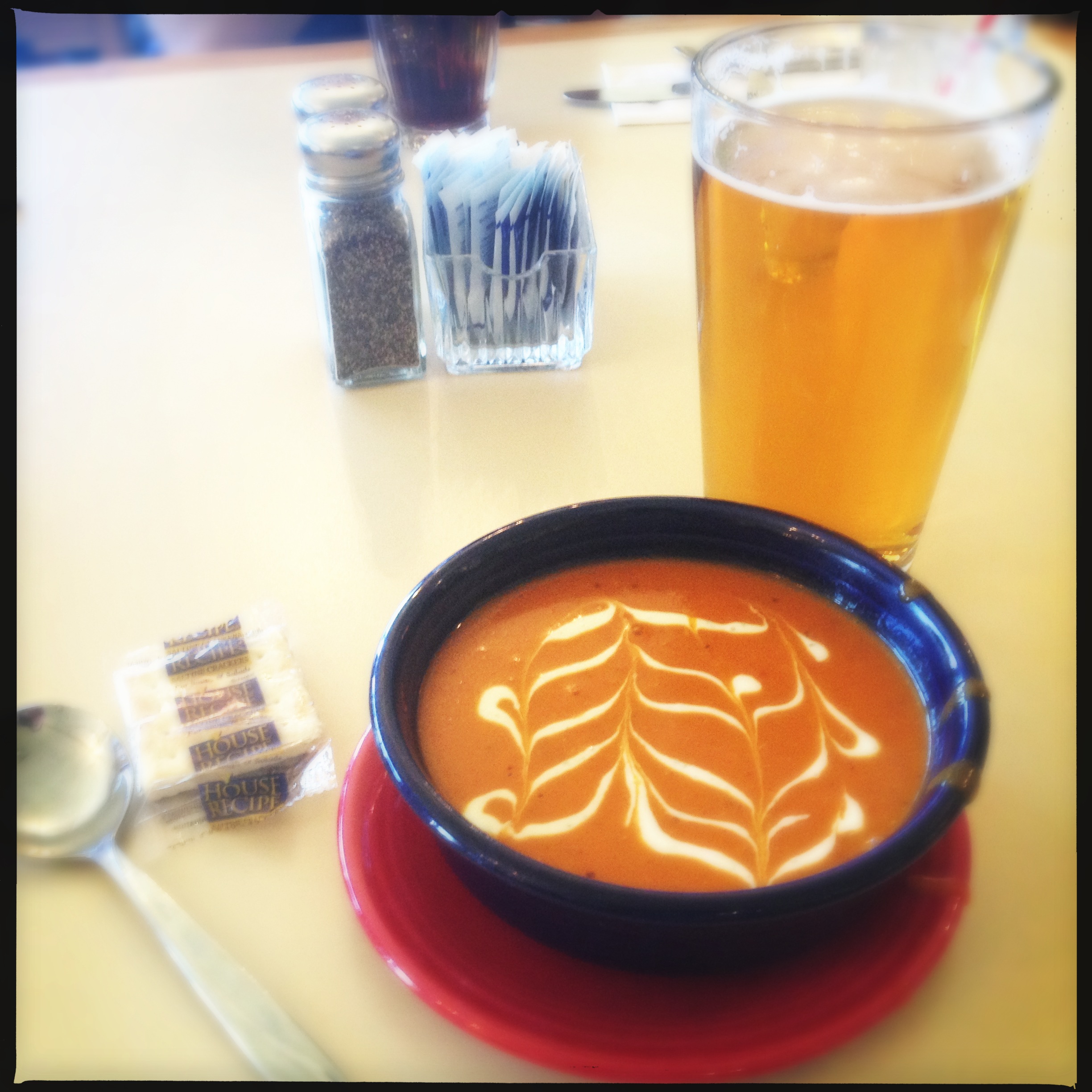 the soup wasn’t bad, but super salty. the salad was a huge disappointment. once again, the beer was the winner of this lunch.