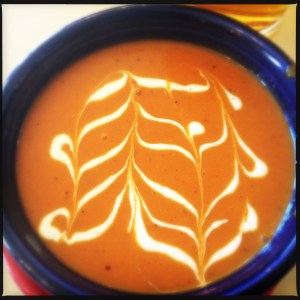 lunch at bright angel dining room, grand canyon village, az: roasted red pepper soup, arizona caesar salad, grand canyon pilsner.