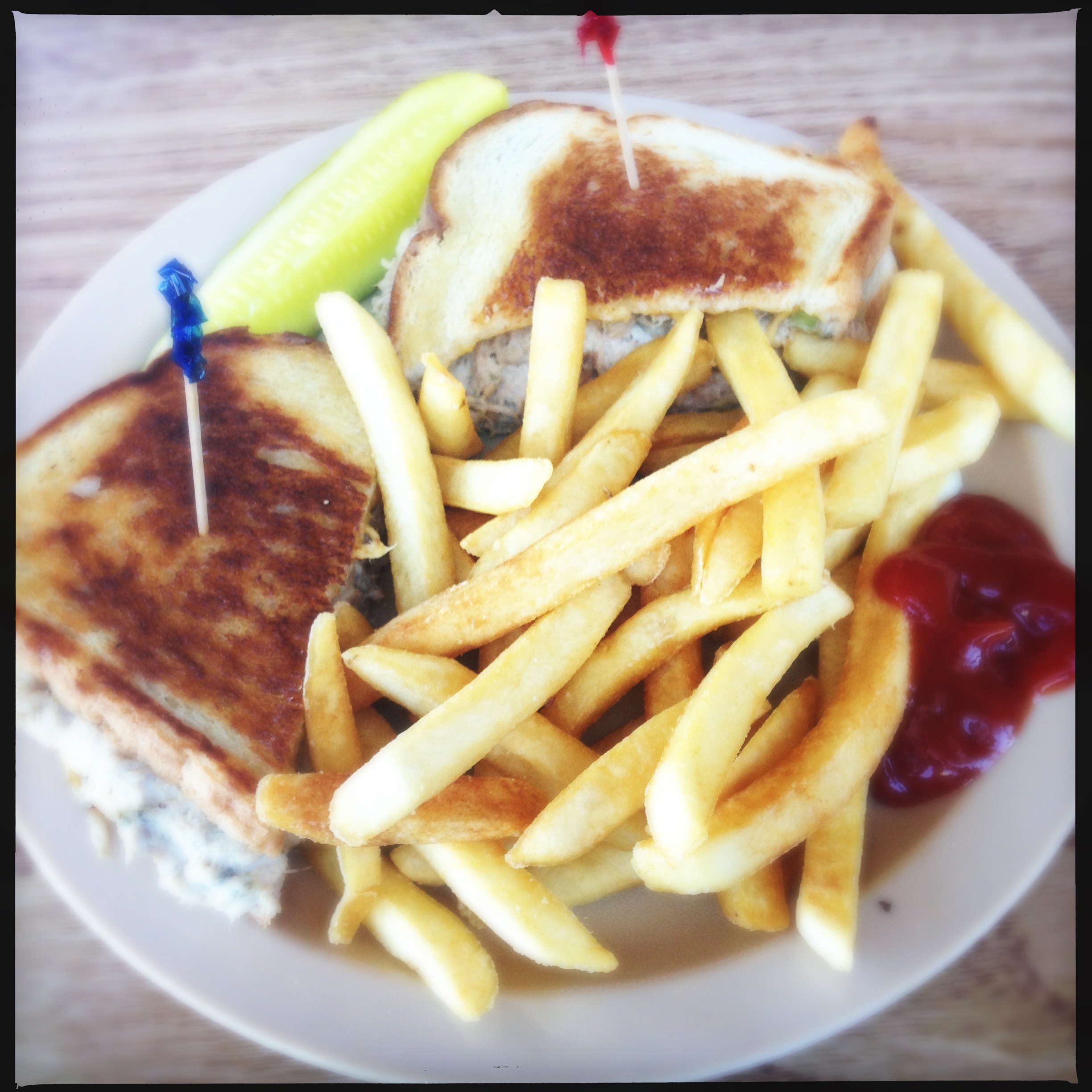 i had been here previously while working on the john mayer #roadtripmusicvideo, so i knew what was to be expected as far as the tuna melt. i didn’t get to taste the homemade pie on that trip, unfortunately i did on this one. fail. fail. fail. the crust tasted like something from a communion cracker i once had when i was eight, and the fruit was obviously from a can. blech.