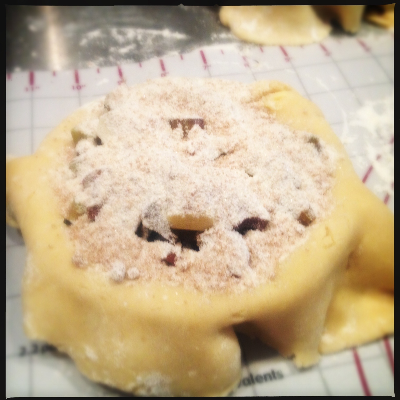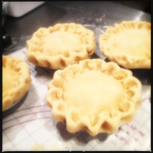 roll out the remaining 4 disks and top each. crimp the edges making sure they don’t hang over too much.